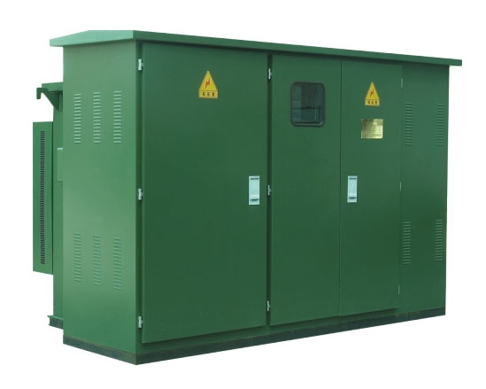 YB37系列预装式变电站(也叫美式变电站,一下简称美变)是将组合式变压器,高压受电部分的负荷开关和保护熔断器装置、低压受电部分的负荷开关和保护熔断器装置、低压配电部分的计量和开关等三者组合在一起的成套变配电装置,是吸收国外先进技术,结合国内实际情况研制开发的一种新V成套变配电设备。由于美变具有体积小、投资少、操作方便、安装快速、维护简单等特点,可分为变压器部分和控制柜部分,其中变压器部分为全密封结构,绝缘油可选用高燃点或普通油两种。控制柜部分又分为高压室和低压室,高压室安装有:高压电缆插头、避宙器、负荷开关操作柄、无励磁分接开关手柄、插入式熔断器、压力释放阀、温度计、压力计、油位计、注油塞、放油阀等,符合开关、无励磁分接开关、插入式熔断器等均与变压器芯一同浸在变压器油中,高压电缆与变压器的连接采用时肘形电缆接插件。低压侧可安装空气断路器、电流互感器,以及电流总计量表、电流表和电压表,可根据用户需要配置输出回路及电容补偿装置。本产品满足各自元器件的有关标准外,还满足《GB/T17467-1998高压/低压预装式变电站》的有关规定,符合本产品技术条件。